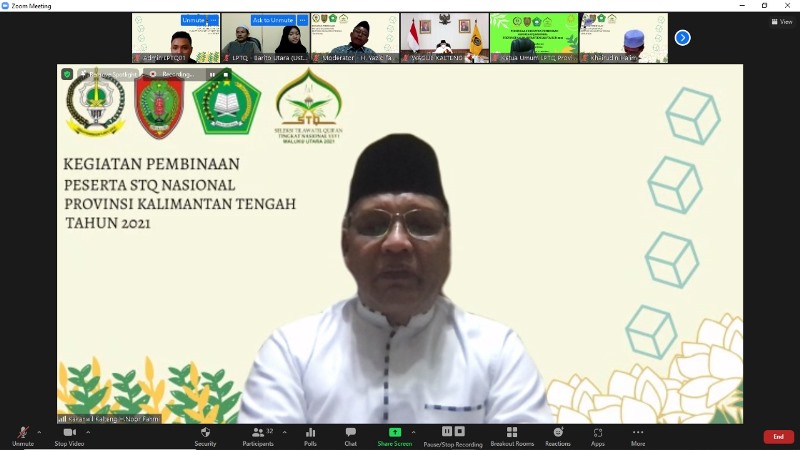 Hal itu disampaikan Kakanwil saat memberikan kata sambutan pada acara pembukaan Pembinaan Peserta STQ Nasional XXVI asal Kalteng yang dilaksanakan secara daring melalui aplikasi zoom meeting, Senin (6/9/2021) malam.