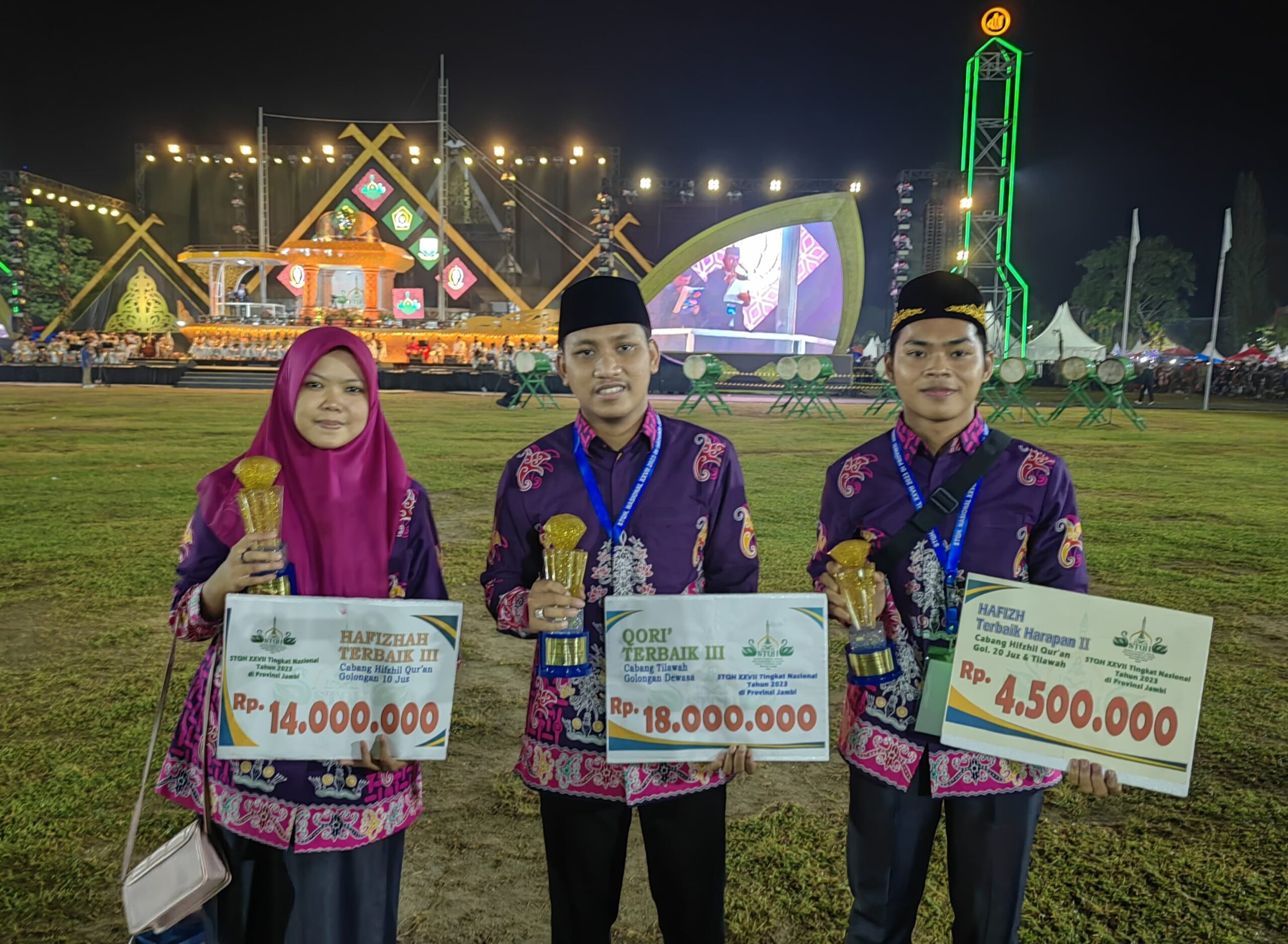 Kafilah yang dipimpin oleh Prof Dr KH Khairil Anwar, MAg itu sukses meraih empat juara yakni juara terbaik II pawai ta’aruf, juara terbaik III cabang seni baca Alquran golongan dewasa putra oleh Wahyu Andi Saputra, juara terbaik III cabang hafalan Alquran golongan 10 juz putri oleh Vira Mawada Rahma dan juara terbaik harapan II cabang hafalan Alquran golongan 20 juz putra oleh Muhammad Ifansyah.